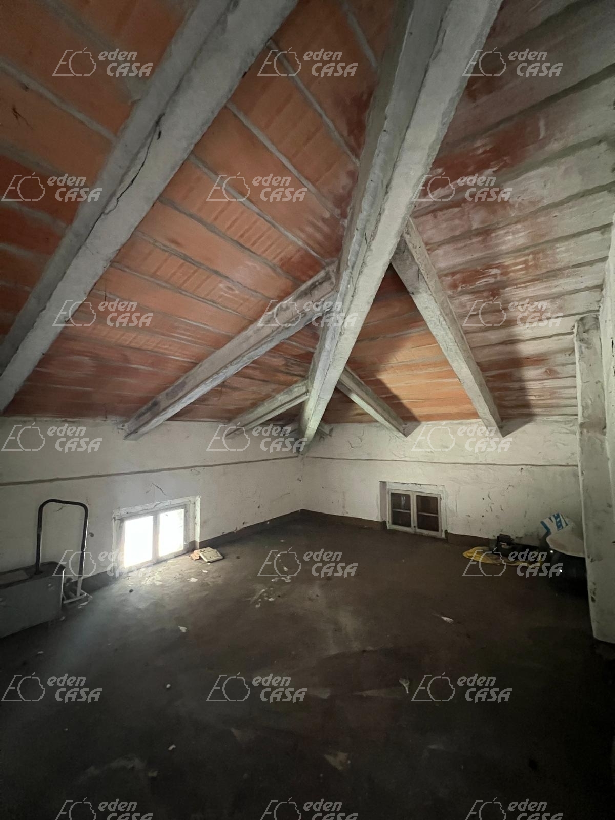Al secondo piano la soffitta è composta da quattro grandi stanze mansardate al grezzo.